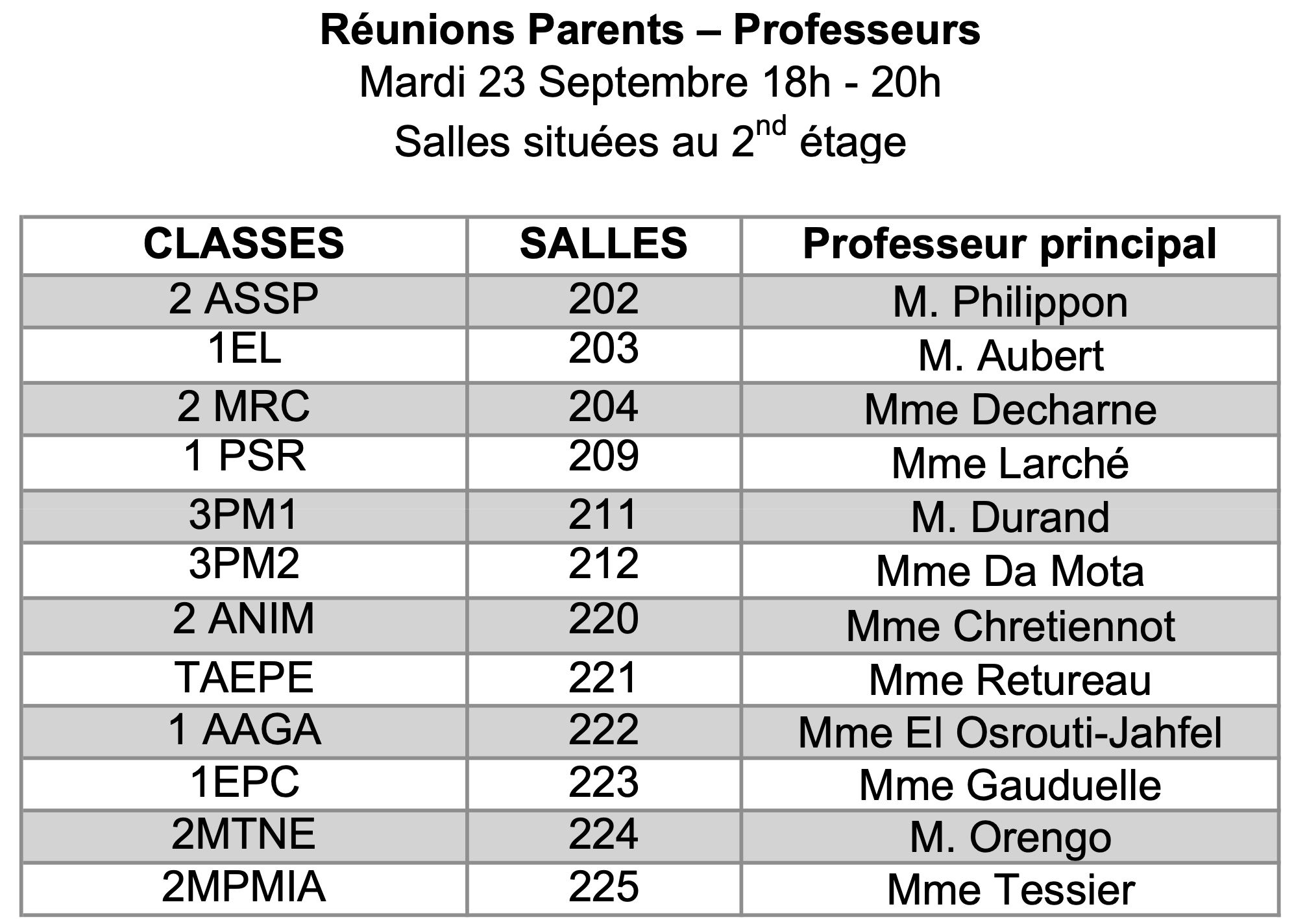 – le mardi 23 septembre de 18h à 20h pour tous les parents des élèves de première CAP, de seconde bac professionnel et de 3e prépa-métiers.