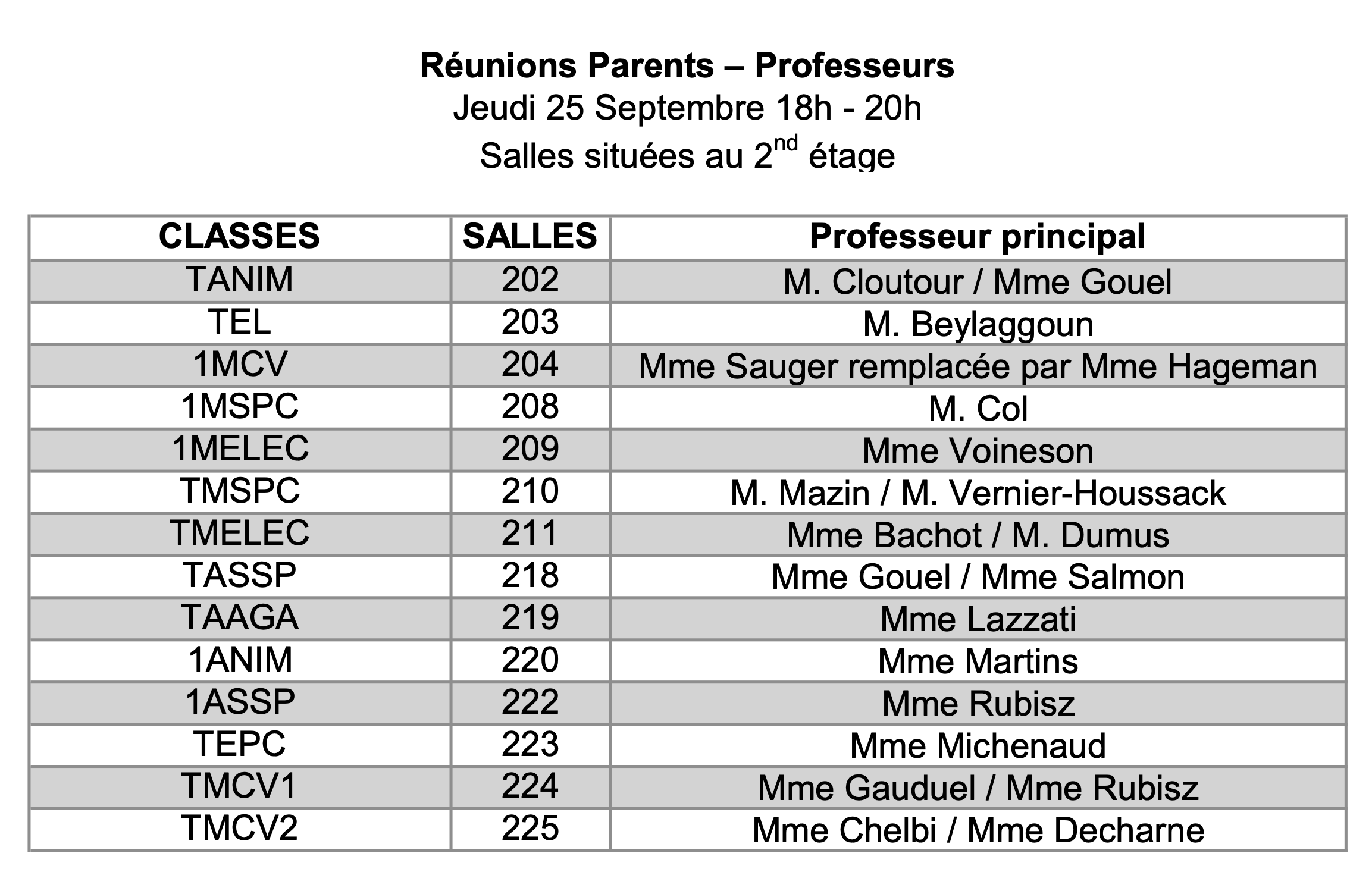 Les rencontres parents/professeurs de la rentrée 2025/2026, se tiendront :
